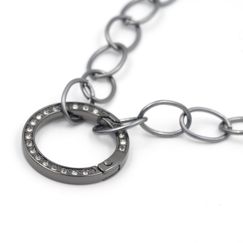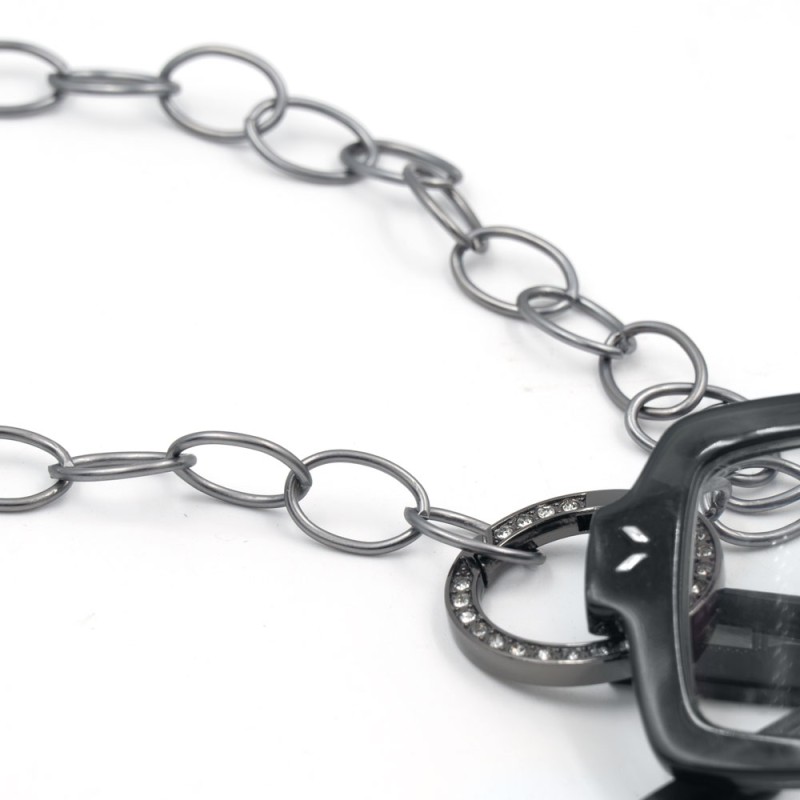 Este colgante para gafas está hecho a mano, en Arnedo (La Rioja), con una cadena de acero inoxidable, un aro de acero inoxidable y adornos de cristal con abertura para poder ponertelo y quitartelo más fácilmente. Diseño original de CordonStyle®
