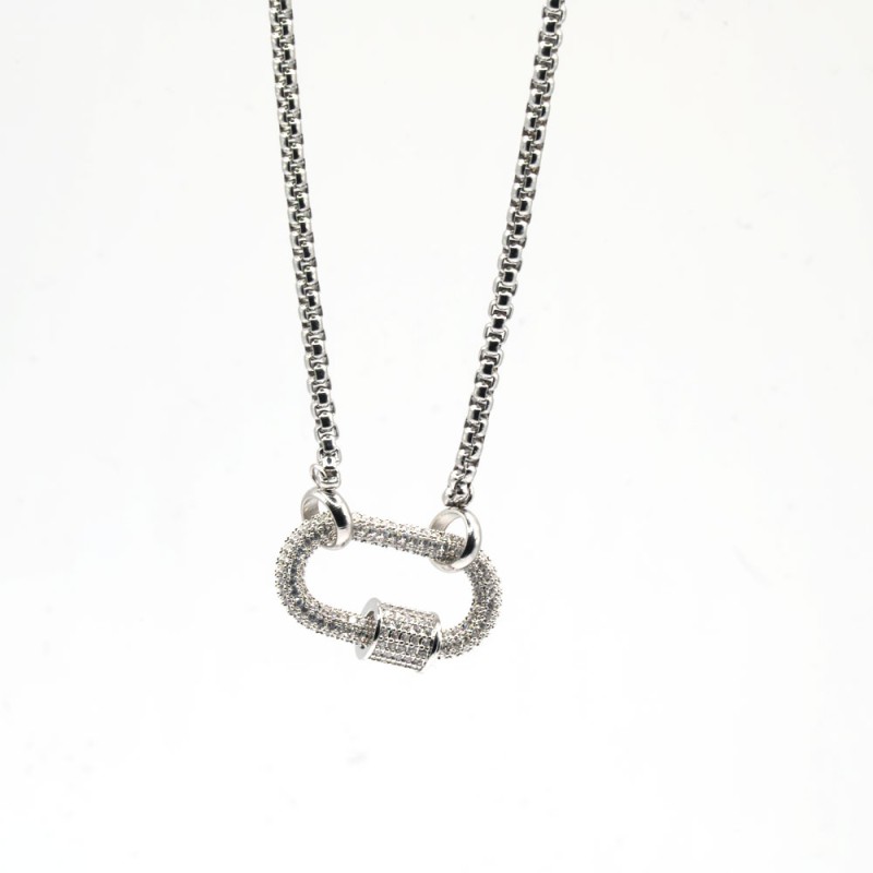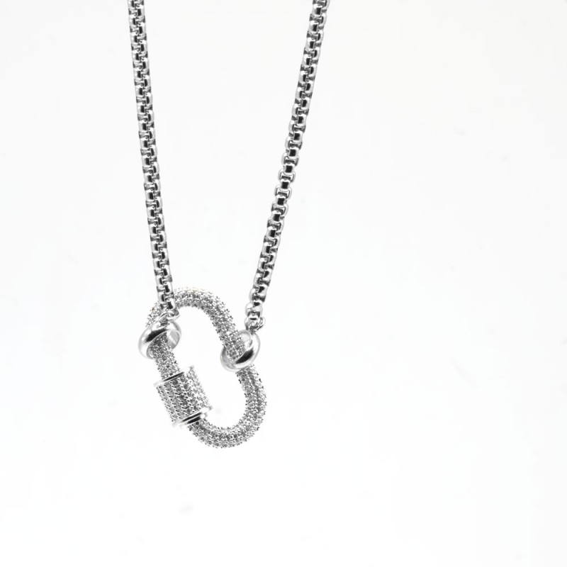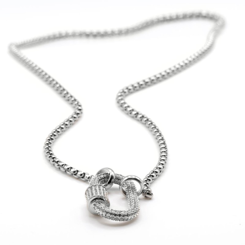 Cadena de acero inoxidable con mosquetón grande, ovalado con cierre de bloqueo de rosca, con micropavé de cristales.