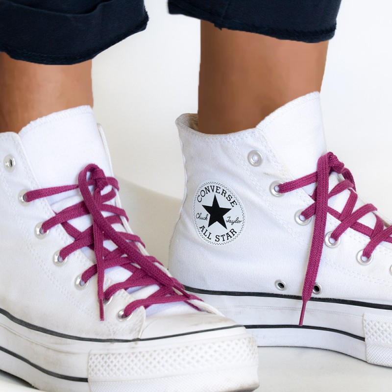 Cordones básicos 100% algodón, planos de aprox. 6mm de ancho. Si eres de esas personas clásicas y te gusta que tus zapatillas estén como el primer día, no lo dudes son tus cordones.