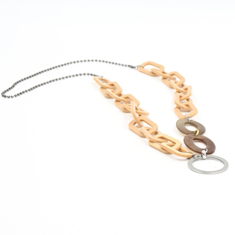 Colgante ensamblado con cadena de eslabones de acetato, adornos de acero inoxidable.